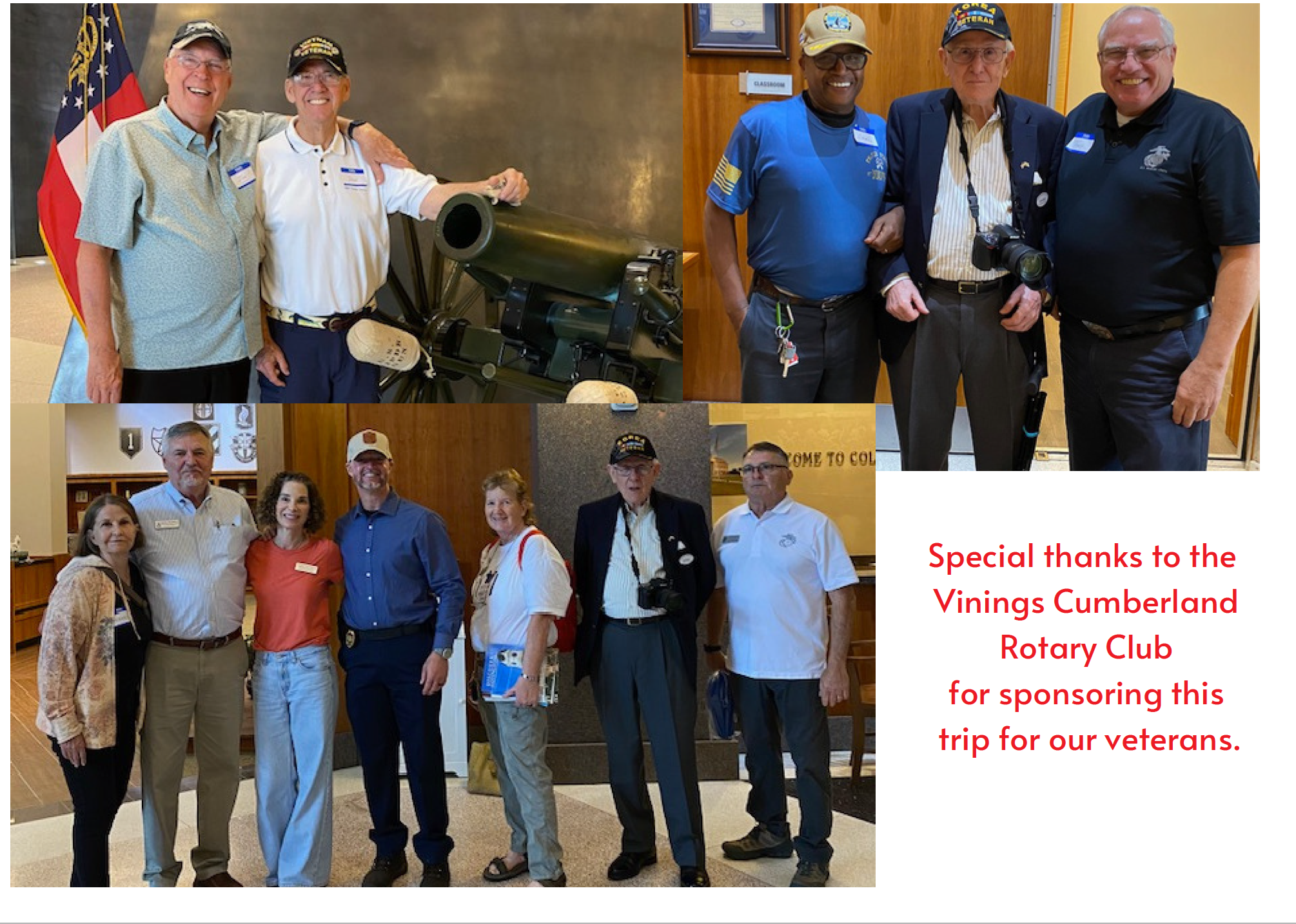 Our Club is partnering with the Cobb County Senior Services to sponsor a bus day trip for veterans to visit the Fort Benning Infantry Museum on May 16, 2023. Our contribution of $1700 covers the bus, museum admission for 45 veterans and 45 box lunches. They are also able to accommodate any of our club veterans at no charge as well as two additional nonveterans. We will provide a recognition package for our Club for their publications and we were featured in their June 2023 Newsletter.