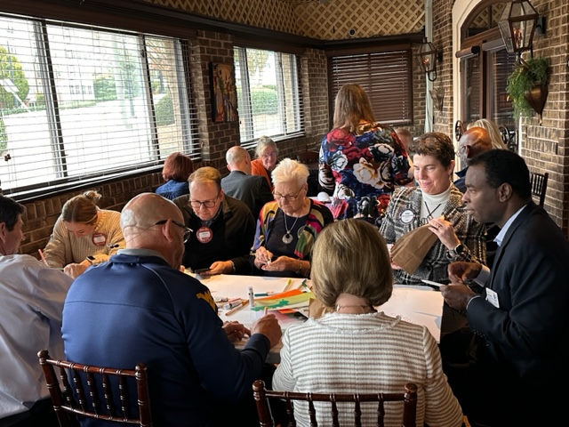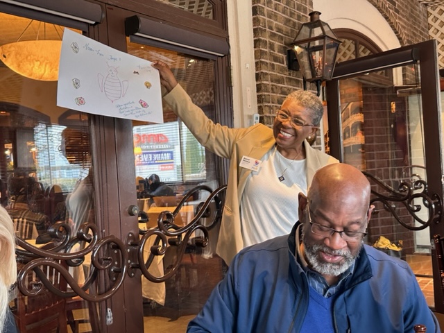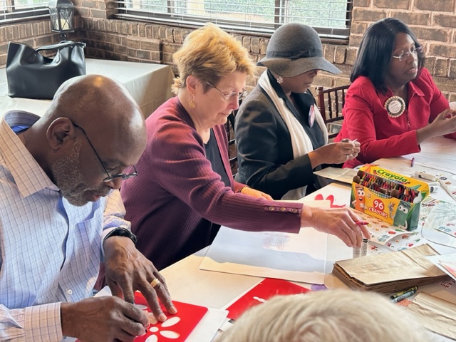 Our club used the occasion of the District Governors visit to our weekly meeting to assemble place mats and gift bags for clients of the Table on Delk. More than 50 of each were completed! Club members have attended mid day meals at the to encourage clients of the facility in living life.