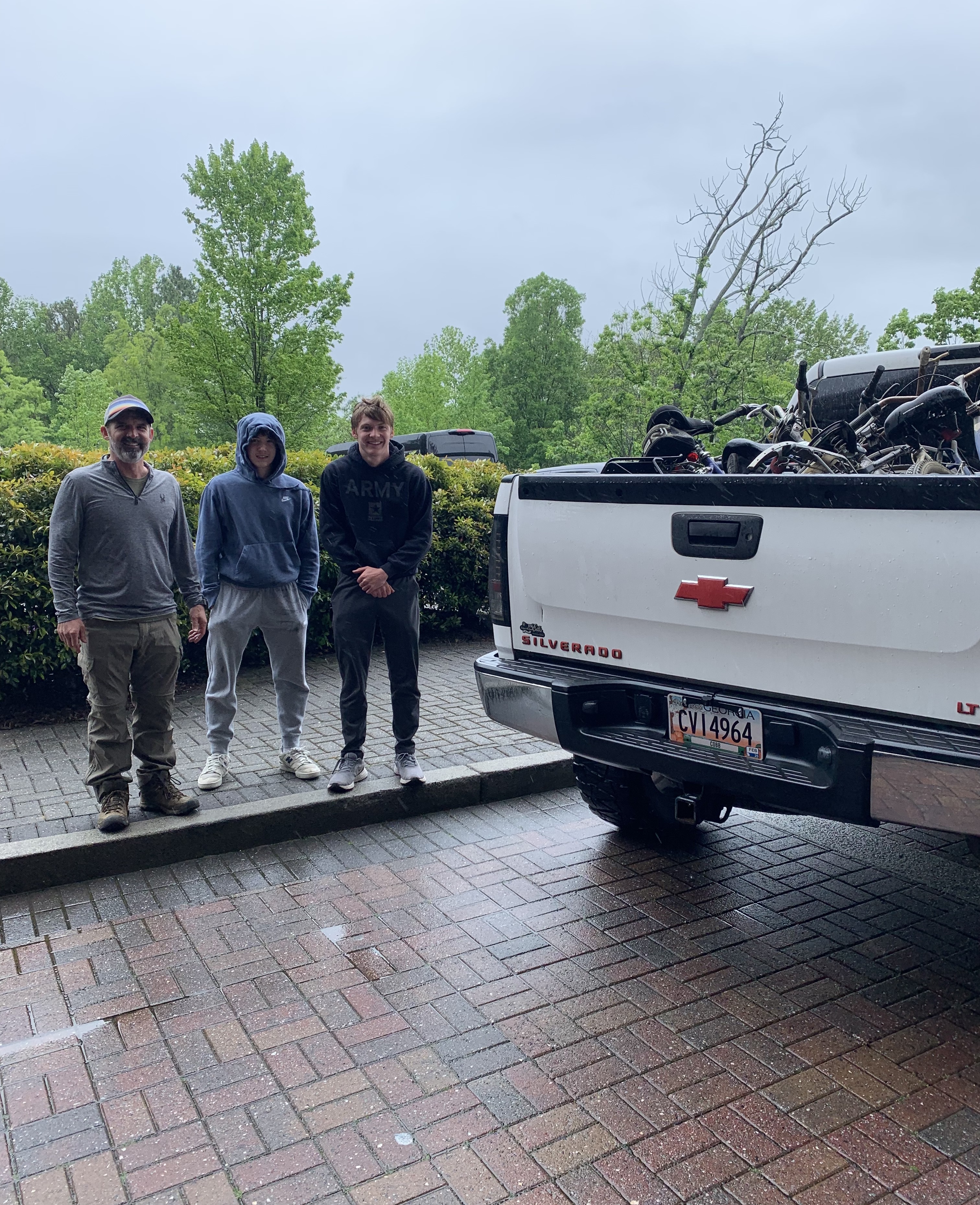 Shown picking up the donated bicycles areCasey Patrick, Past President of Vinings Cumberland Rotary Club, which sponsors the Interact students at Campbell High, and studentsSenior Casey Patrick and Sophomore Sean Patrick.