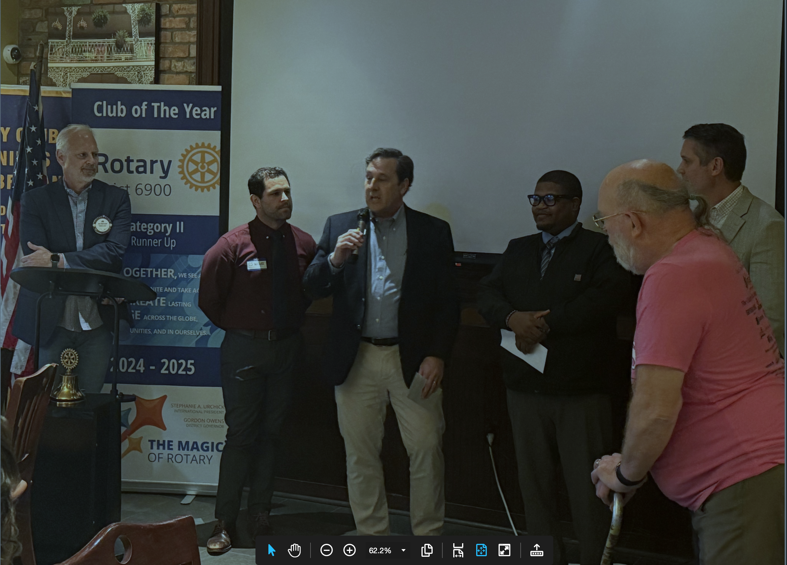 On August 19th, 2024, almost 1,500 runners gathered to compete in the 27th Annual Vinings Downhill 5K race. The Vinings Down Hill 5K course begins at the top of Mt. Wilkinson Parkway , winds around the Cumberland Mall area, and ends at the Lovett School (280-foot net drop). All club members participate in this community wide event each at several meetings of planning and preparations. 40 members participated on race day itself. In addition to club and community fellowship, the purpose of the race is to donate the proceeds to local charities. This year, more than $85,000 was distributed to 17 charities.
